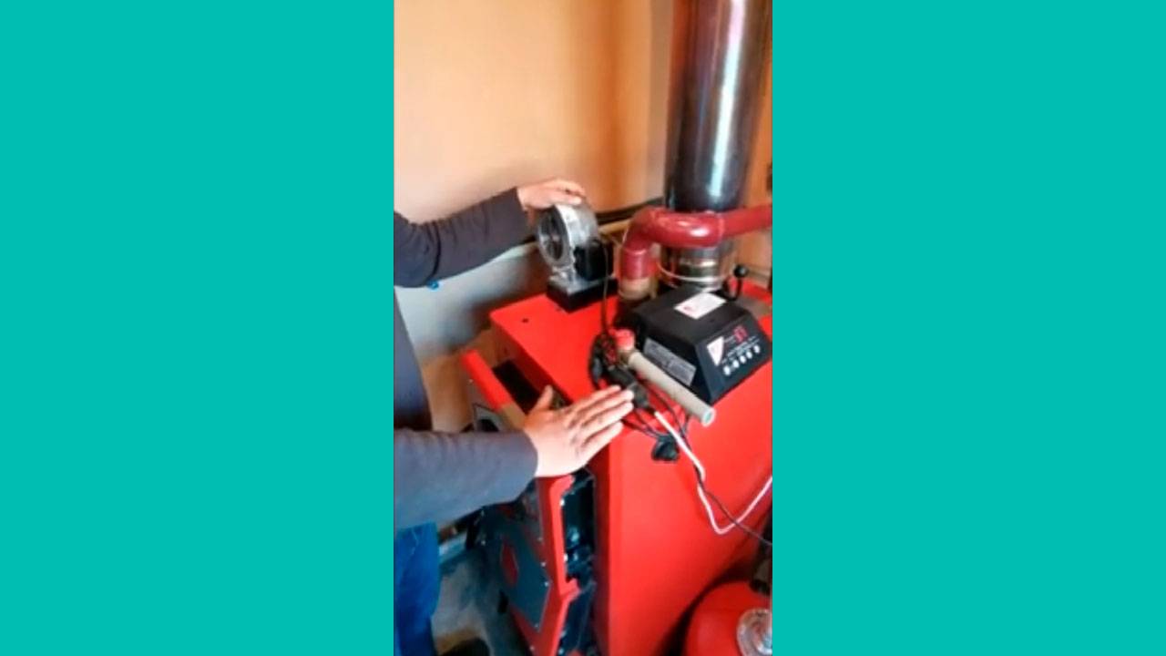 Данный котел является универсальным, он может работать с подачей электроэнергии. То есть, как у нас, подключен вентилятор, который подает воздух для горения в топку.