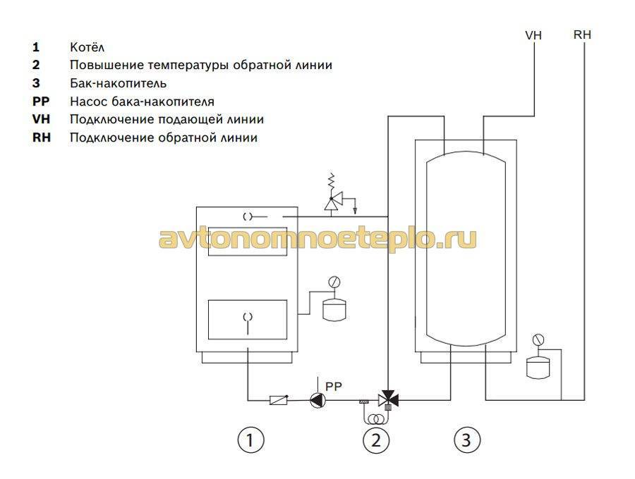 Современная котельная оборудована двухконтурным твердотопливным котлом с накопительным баком для горячей воды