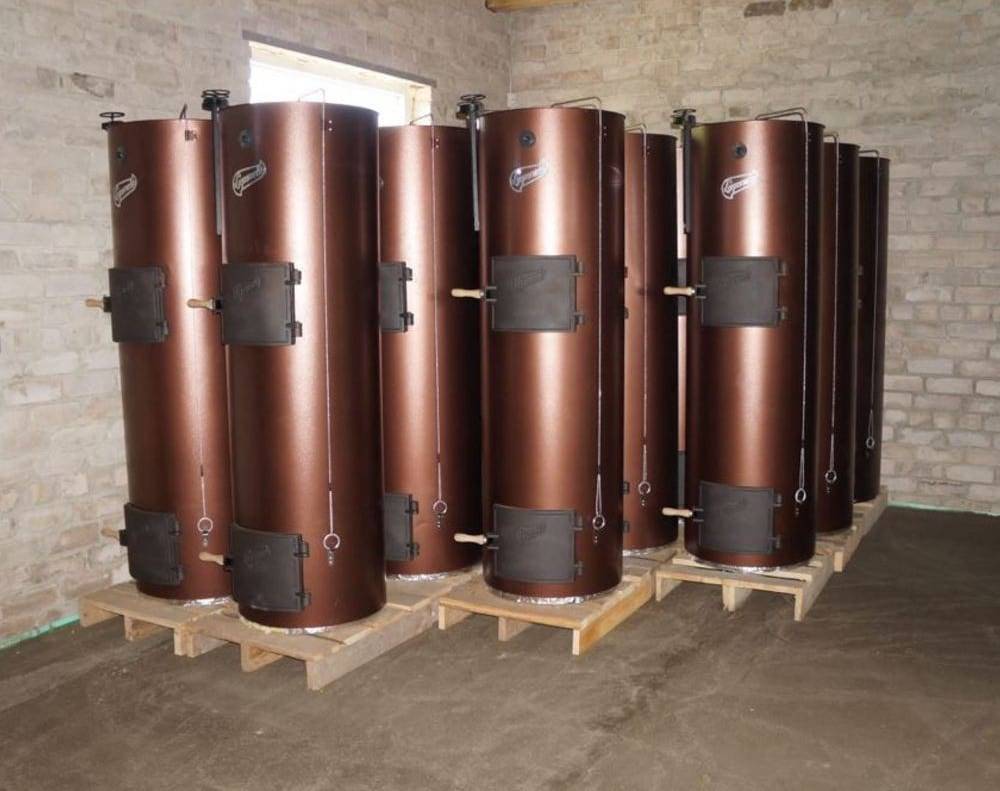Теплообменником выступает «водяная рубашка», нагревающая теплоноситель. Установка дополнительных заслонок на путях выхода газов повышает теплоотдачу и КПД.