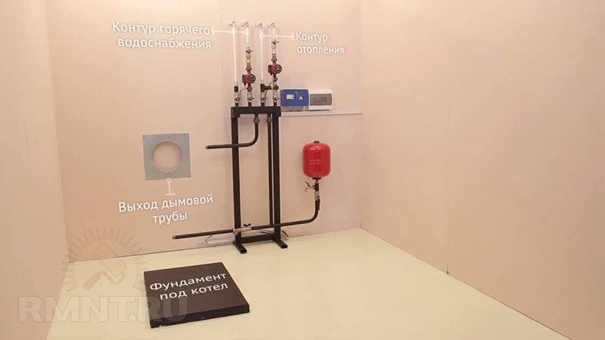 Этот этап включает в себя выведение труб подачи и «обратки» уже готовой отопительной системы в помещение котельной, её монтаж и опрессовку.