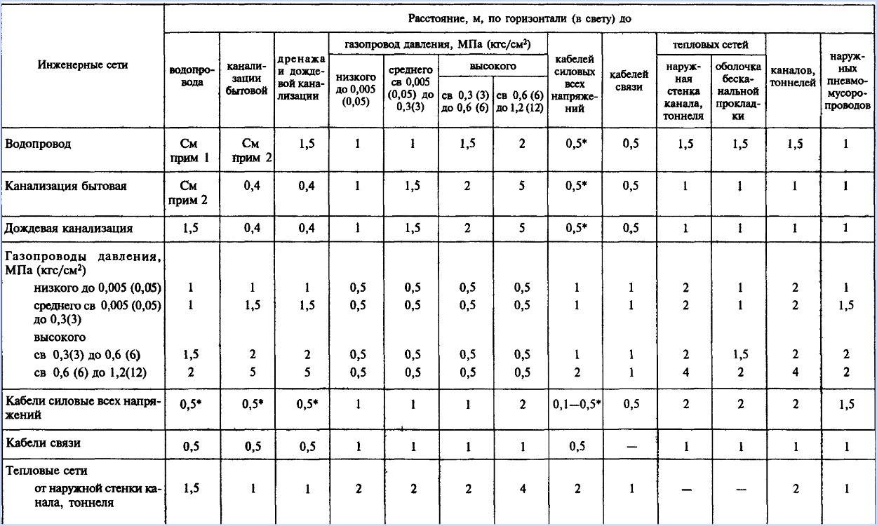 Рис. 5 Нормативы дистанций между коммуникациями под землей