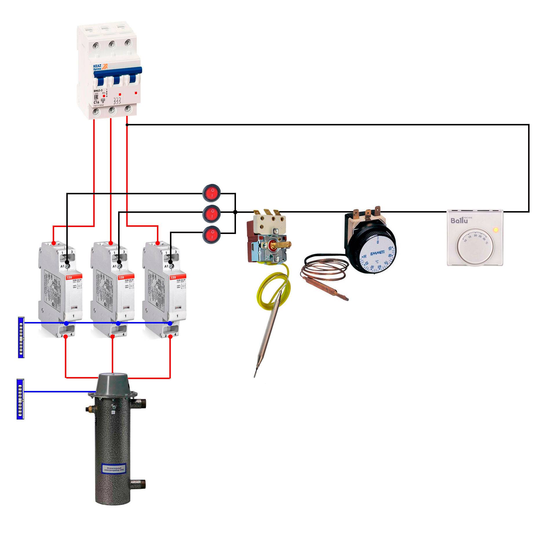 Сама электрическая схема подключения одинакова для всех электрокотлов, разница лишь в количестве фаз.