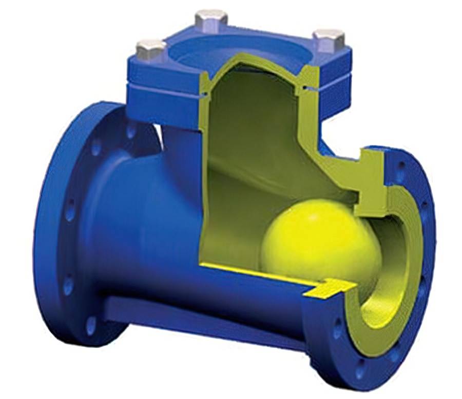 Когда жидкость отсутствует, рабочая область трубы блокируется, в результате чего поток не способен проходить в неправильном направлении. Однако подобные модели имеют недостаток – в отличие от поворотного и подъемного механизма в данной конструкции заслонка-шарик прилегает к ободку устройства не полностью.