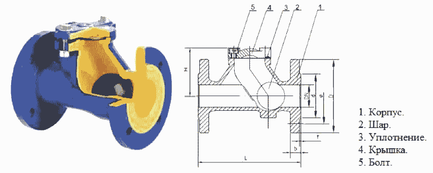 - Запорный механизм. У шарового клапана – это резиновый шарик, но могут также применяться мембраны, заслонки и другие устройства.