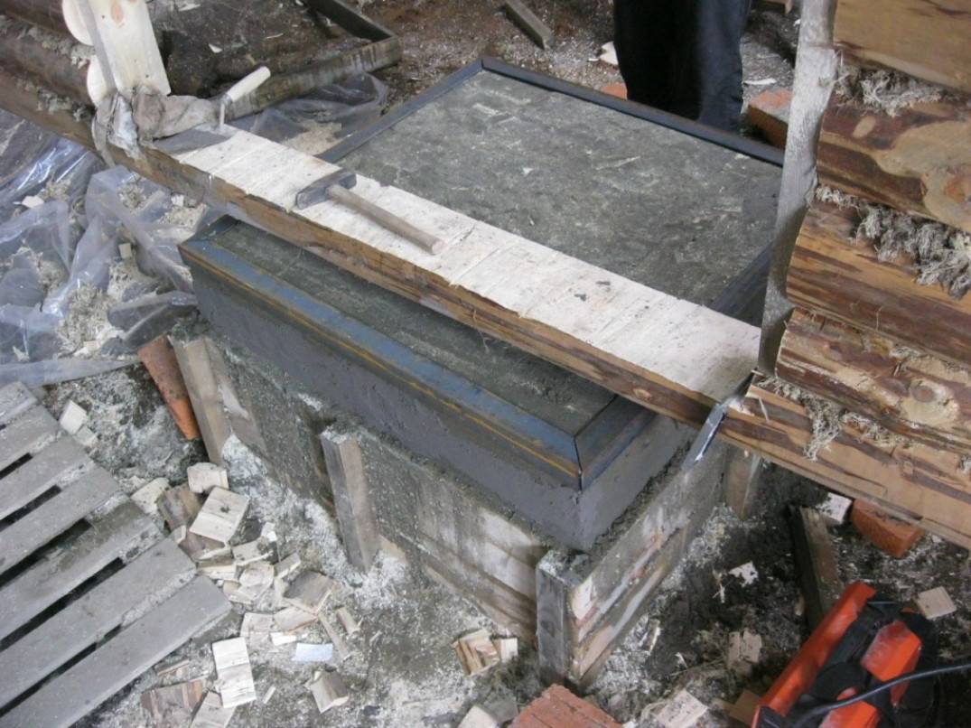 - для чугунных и компактных кирпичных печей весом до 450 кг монтируют бетонную подушку;