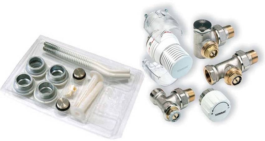 Для того чтобы правильно подсоединить радиатор отопления к системе, необходим комплект для установки радиаторов отопления. Он состоит из двух специальных прямых или угловых кранов. При помощи комплекта для монтажа можно полностью перекрывать подачу теплоносителя в радиатор, это позволяет отсоединить его при работающей системе.