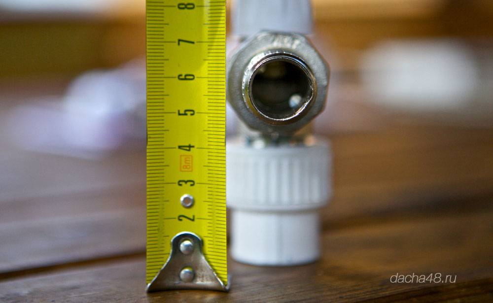 После кранов впаиваются тройники. Средний выход верхнего фитинга должен смотреть вниз, нижнего – вверх. В эти отводы впаивается перемычка, которая изготавливается из трубы диаметра 20 мм.