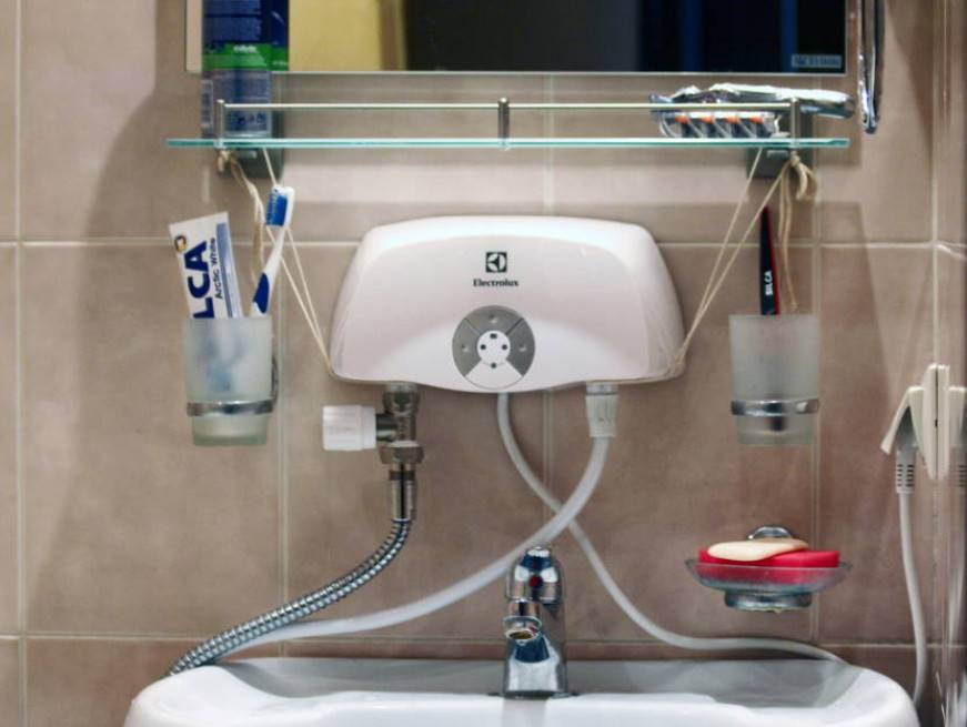 При этом некоторые проточные нагревательные приборы можно смонтировать вместо смесителя на раковине в ванной или крана в кухонном помещении. При использовании такой разновидности устройств для них не нужно прокладывать дополнительный водопровод. Однако большинство моделей водогрейного проточного оборудования устанавливается максимально близко к водоразборной точке.