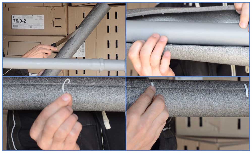 на трубу устанавливается утеплитель. Трубы из вспененных