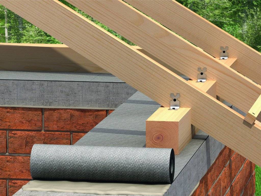 Мауэрлат должен прочно крепится к несущим стенам шпильками и анкерами. Сама стропильная система, вес всей кровли, снеговые и ветровые нагрузки создают значительную распирающую силу, которая может поломать не усиленные стены. Армопояс же под мауэрлат решает эту задачу, и выполнятся он так же, как и под перекрытие.