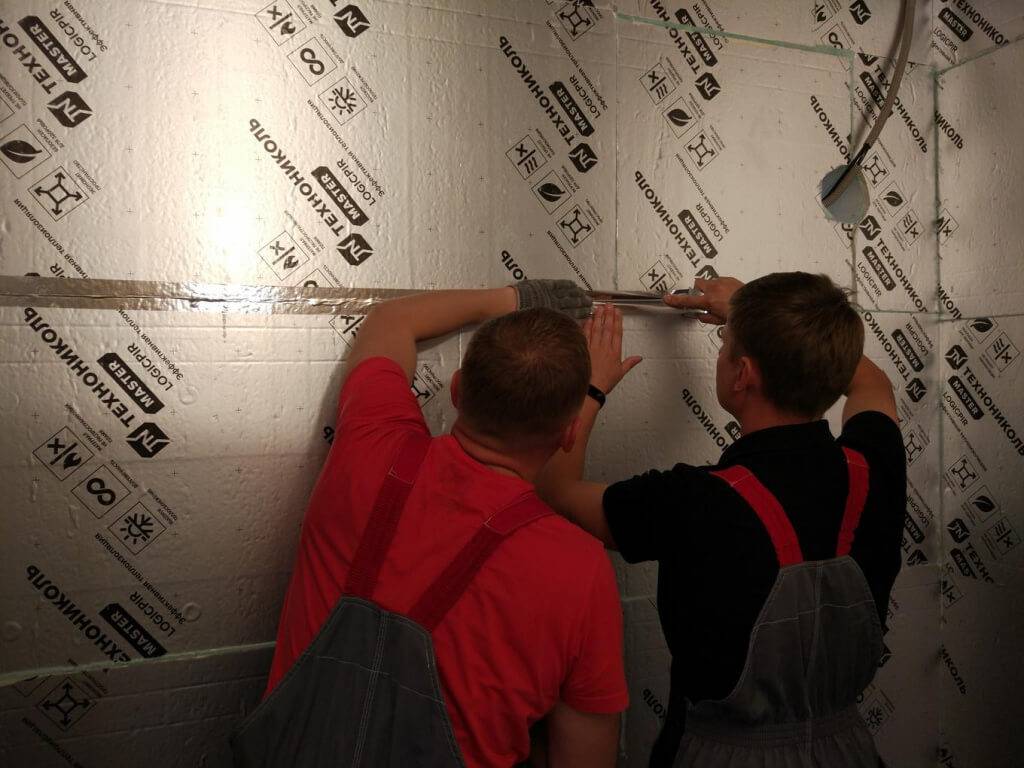 | Далее нужно позаботиться о паронепроницаемости слоя. Стыки проклеивают алюминиевой лентой для обеспечения герметичности и надежной защиты стены от влаги. Кроме того, применение фольгированной обкладки при монтаже утеплителя LOGICPIR Стена позволяет полностью отказаться от пароизоляции. | |
