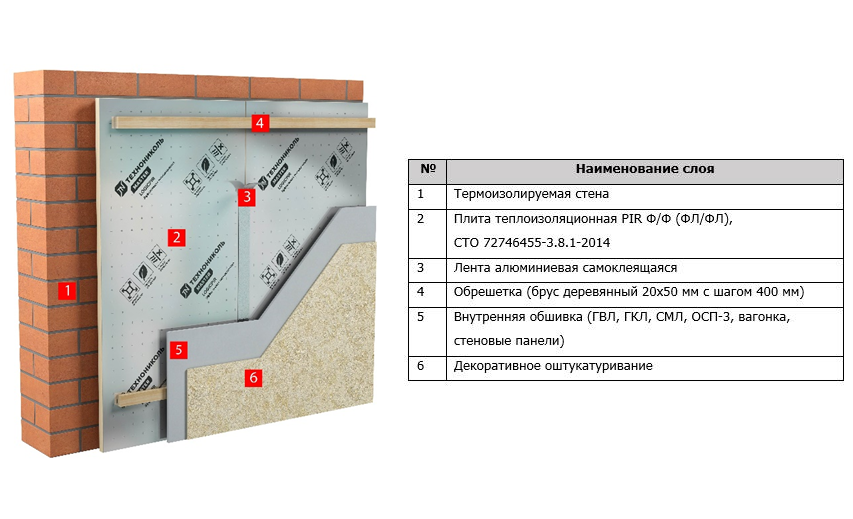 ТН-Стена Стандарт PIR – структура теплоизоляционной системы