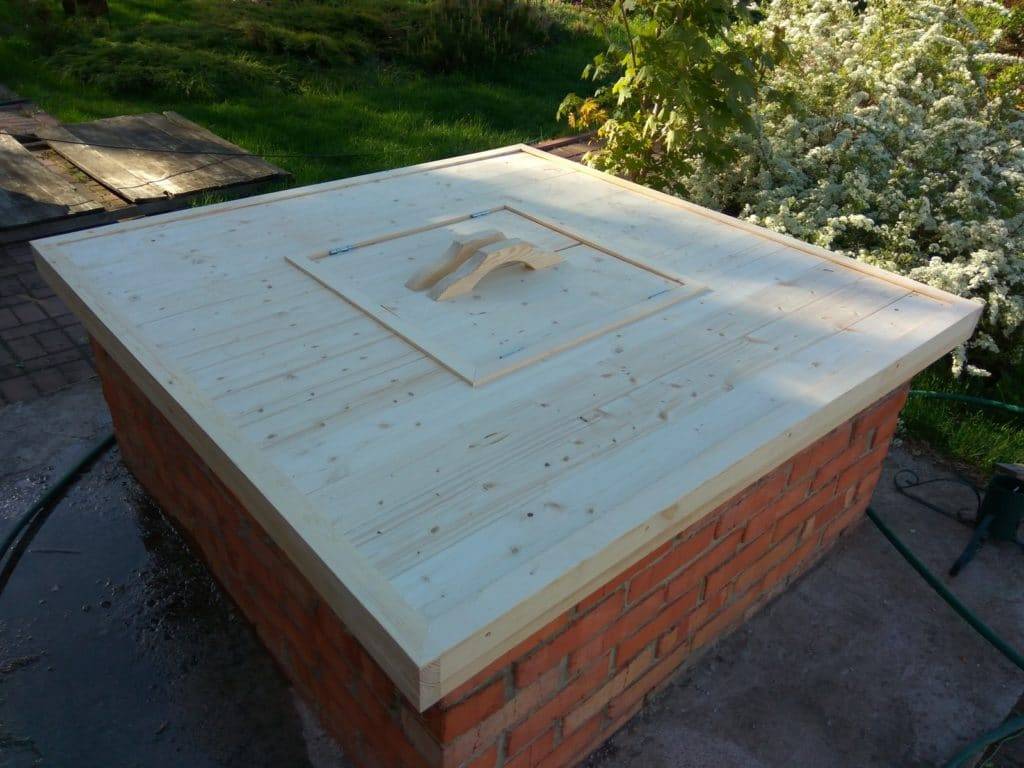 Для питьевого колодца желательно сделать домик, либо навес — чтобы его не засыпало зимой снегом. Что касается крышки: лучше, если она будет деревянная многослойная.