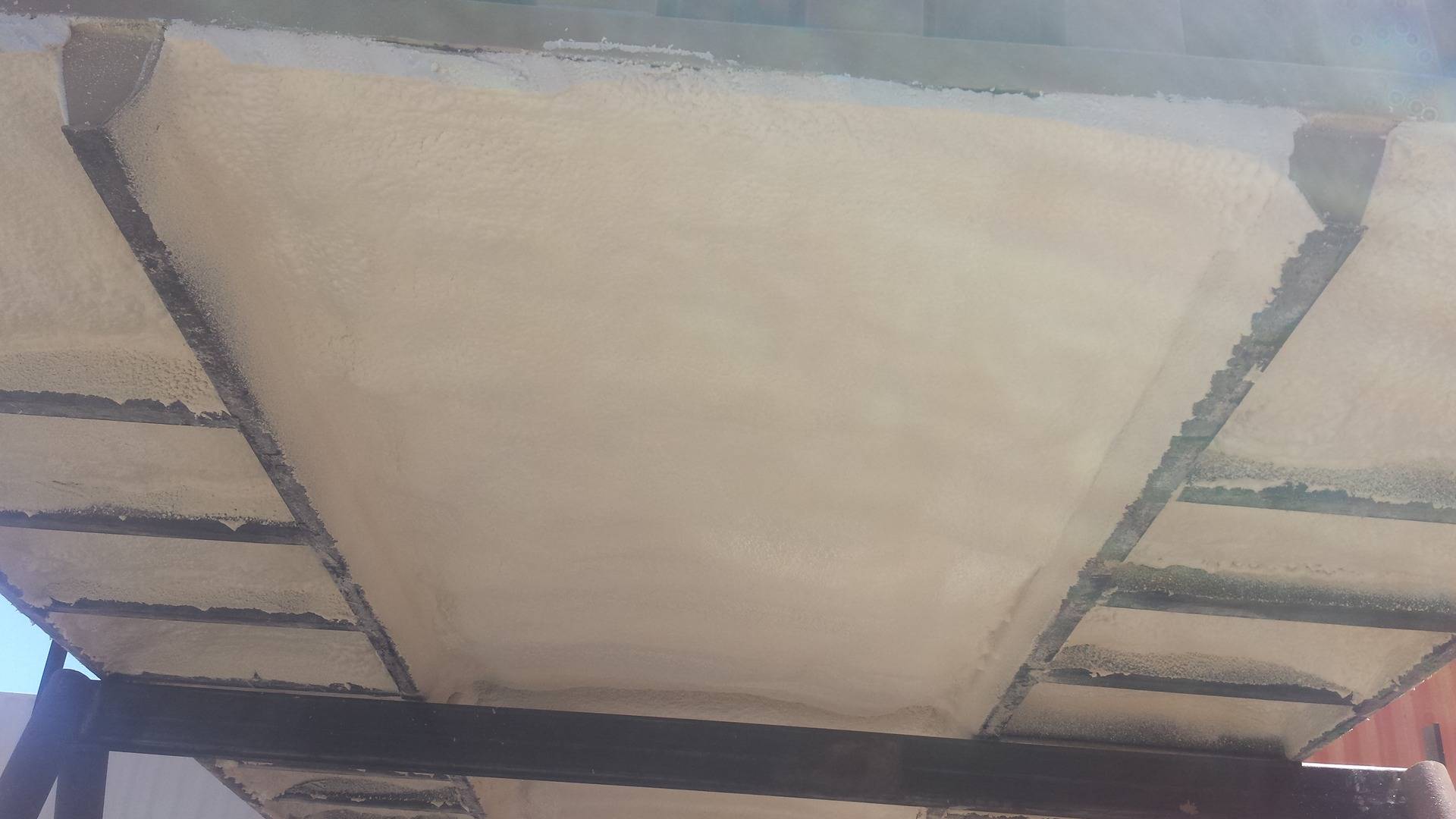 Напыление ППУ защищает металл от коррозии и от внешнего шума. Для работы используют баллоны с монтажной пеной. Есть более дешевый вариант – напыление двухкомпонентной пены с использованием специального оборудования. Этот материал стоит меньше, но оборудование для работы с ним очень дорогое. Поэтому лучше воспользоваться услугами строителей или взять инструмент в аренду.