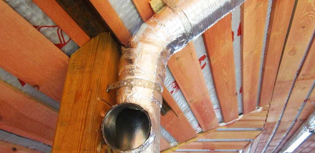 В тех случаях, когда вентиляционная труба идет через помещение, теплоизоляцию укладывают там, где ощущается промерзание, и монтаж здесь проводят в первую очередь