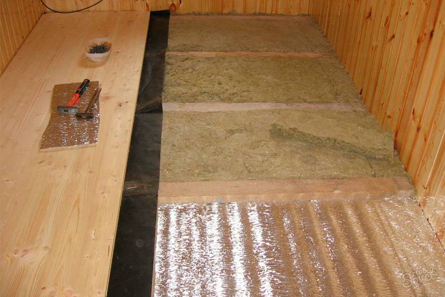 Последний шаг в утеплении предбанника – укладка изоляции на пол