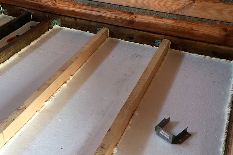 Через него уходит большое количество тепла, особенно в строении на сваях, поэтому важно сделать качественную теплоизоляцию. Чаще всего в качестве материала используют керамзит, который препятствует образованию грибка и конденсата