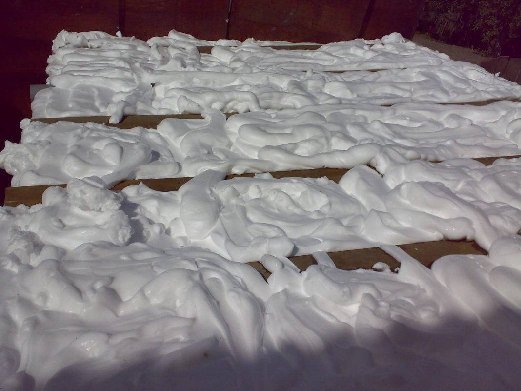 Это жидкий вариант пенопласта, который обладает теми же плюсами и минусами, что и твердый вариант. Преимущество его состоит в том, что он может быть залит в труднодоступные места и после застывания образует монолитное покрытие без швов.