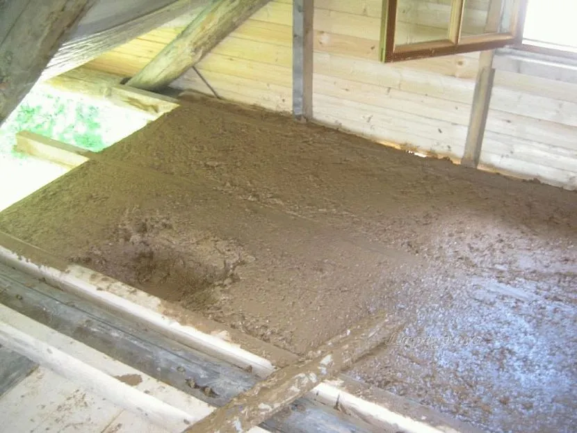 - Готовую массу из глины и опилок разложить на подготовленную основу, заполнить все щели. Оптимальная толщина слоя – около 30 см.