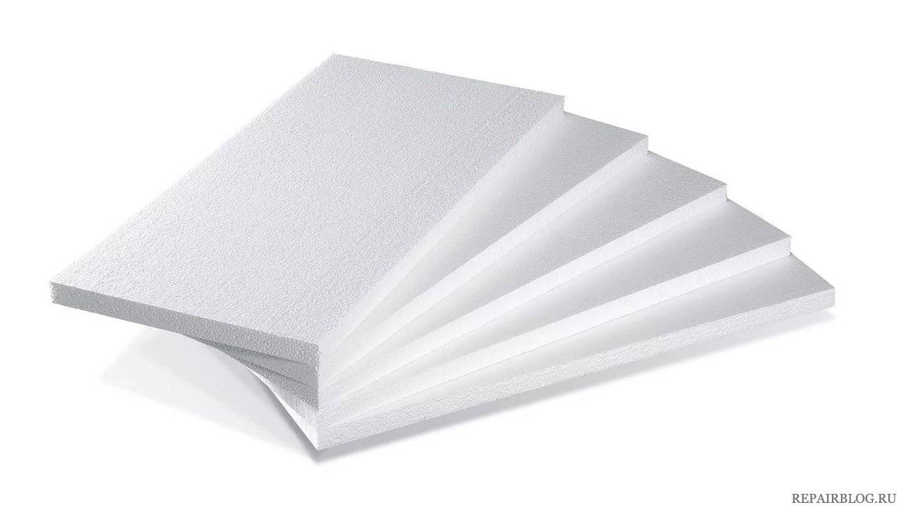 - пенопласт — марка и толщина зависят от места проведения работ и способа отделки потолка;