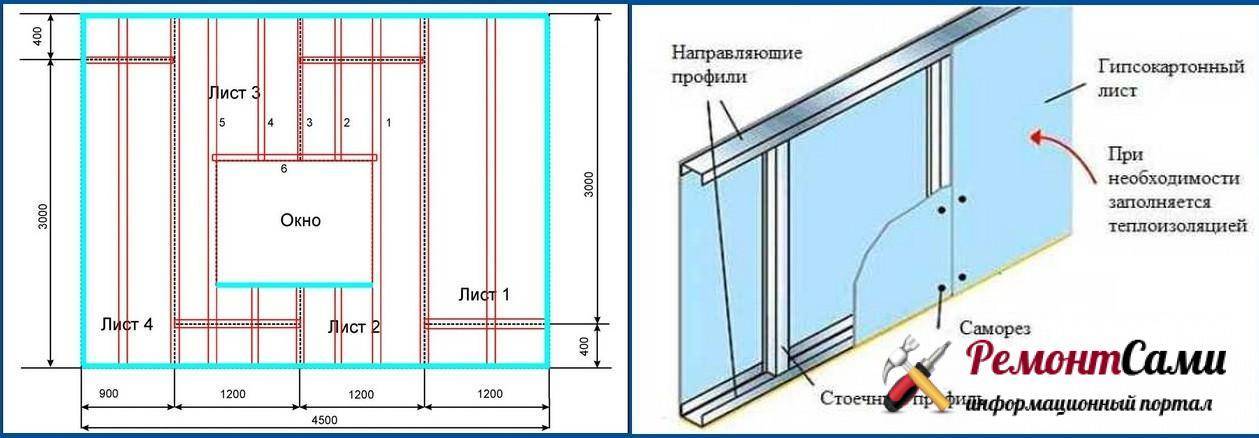 Монтаж листов гипсокартона осуществляют по такому алгоритму. Материал укладывают на каркас и крепят нижний угол. Далее, ввинчивают саморезы по порядку к противоположному концу листа (не все углы сразу!).