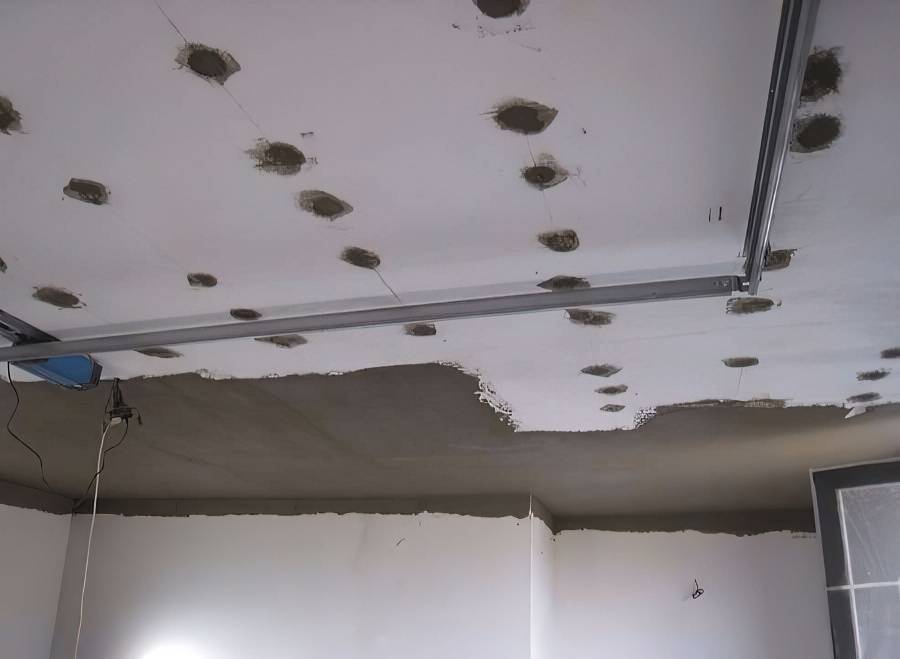 Перед утеплением все рабочие поверхности необходимо подготовить. Стены, потолок, ворота обязательно очищают от пыли, грязи, старой штукатурки. Основание под слой утеплителя должно быть чистым, прочным. Тогда и пенопласт удастся хорошо закрепить. Все трещины, сколы нужно закрыть слоем штукатурки, чтобы добиться ровности поверхности.