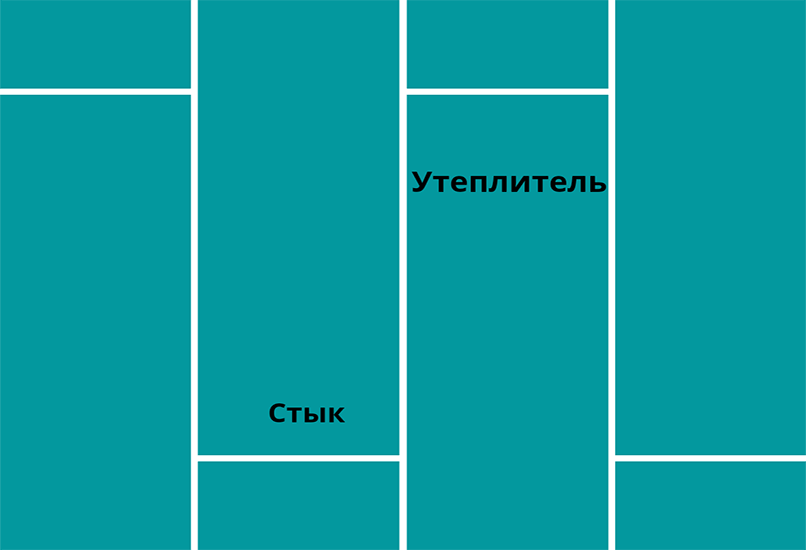 Поверх гидроизоляции укладывают утеплитель. Начинают снизу, маты утеплителя укладывают в шахматном порядке. На стык в предыдущем ряду должен приходится цельный лист в следующем ряду.