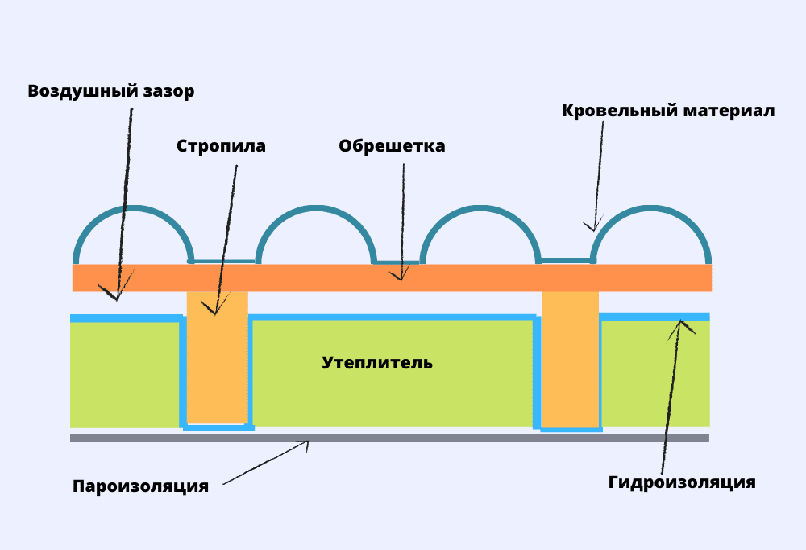 На схеме наглядно показана последовательность слоев утепляющего пирога.