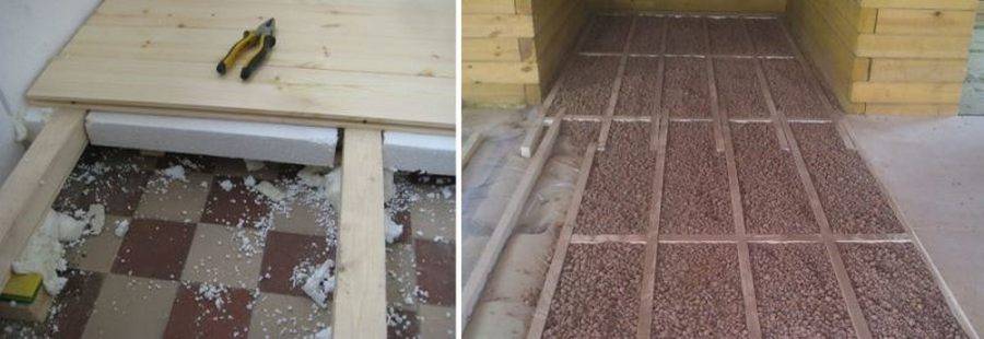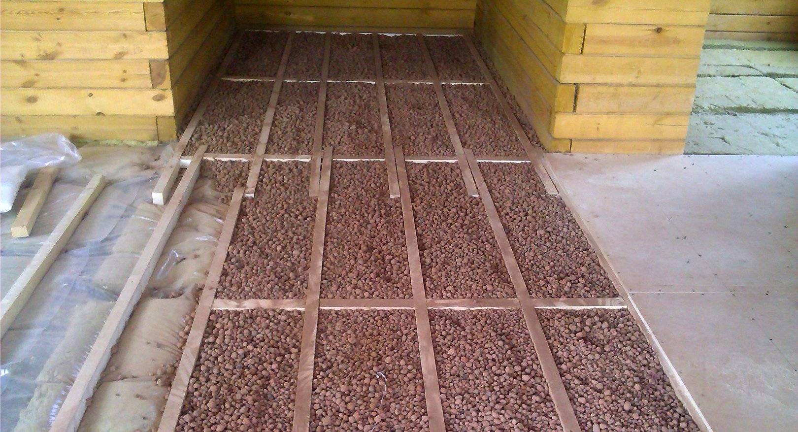 Утепление пола лучше проводить керамзитом из разных фракций.