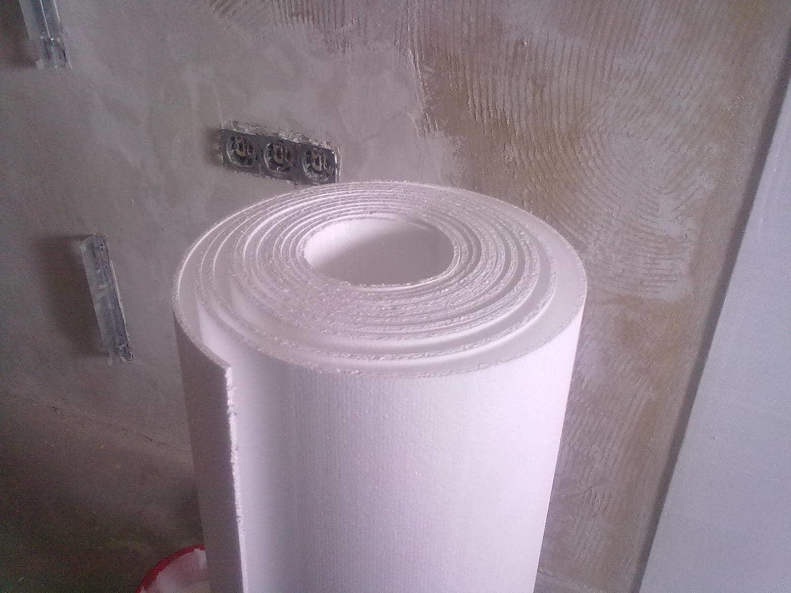 - Рулонный пенополистирол. Обладает теми же качествами, что и штукатурка с таким же наполнителем.