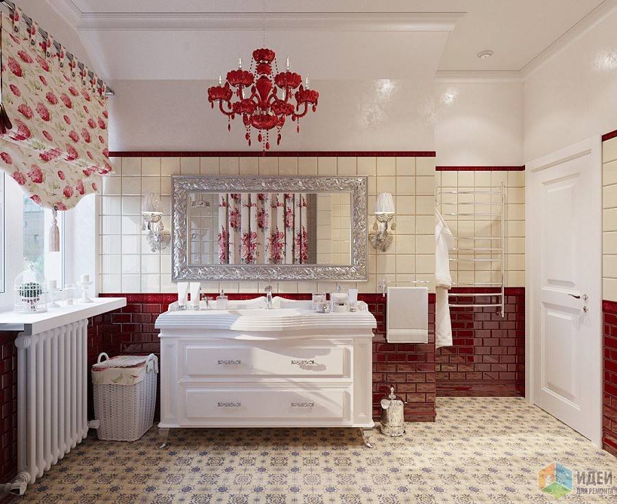 Плюсом этого варианта дизайна является возможность выбора материалов с учетом финансовых потребностей. Есть возможность приобрести мебель, плитку прованс в ванную в бюджетном сегменте и в элитной категории.