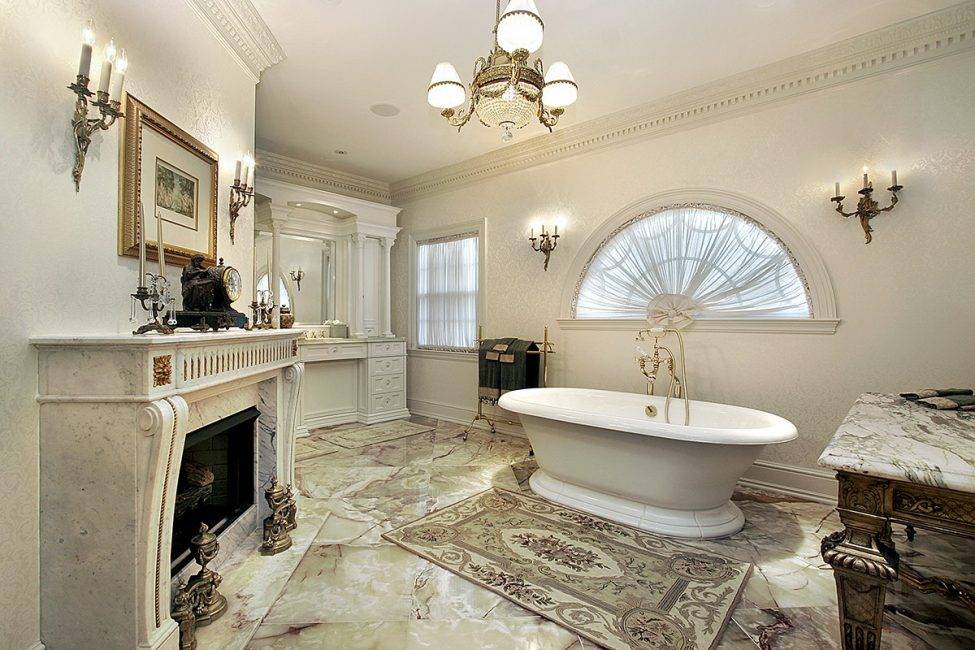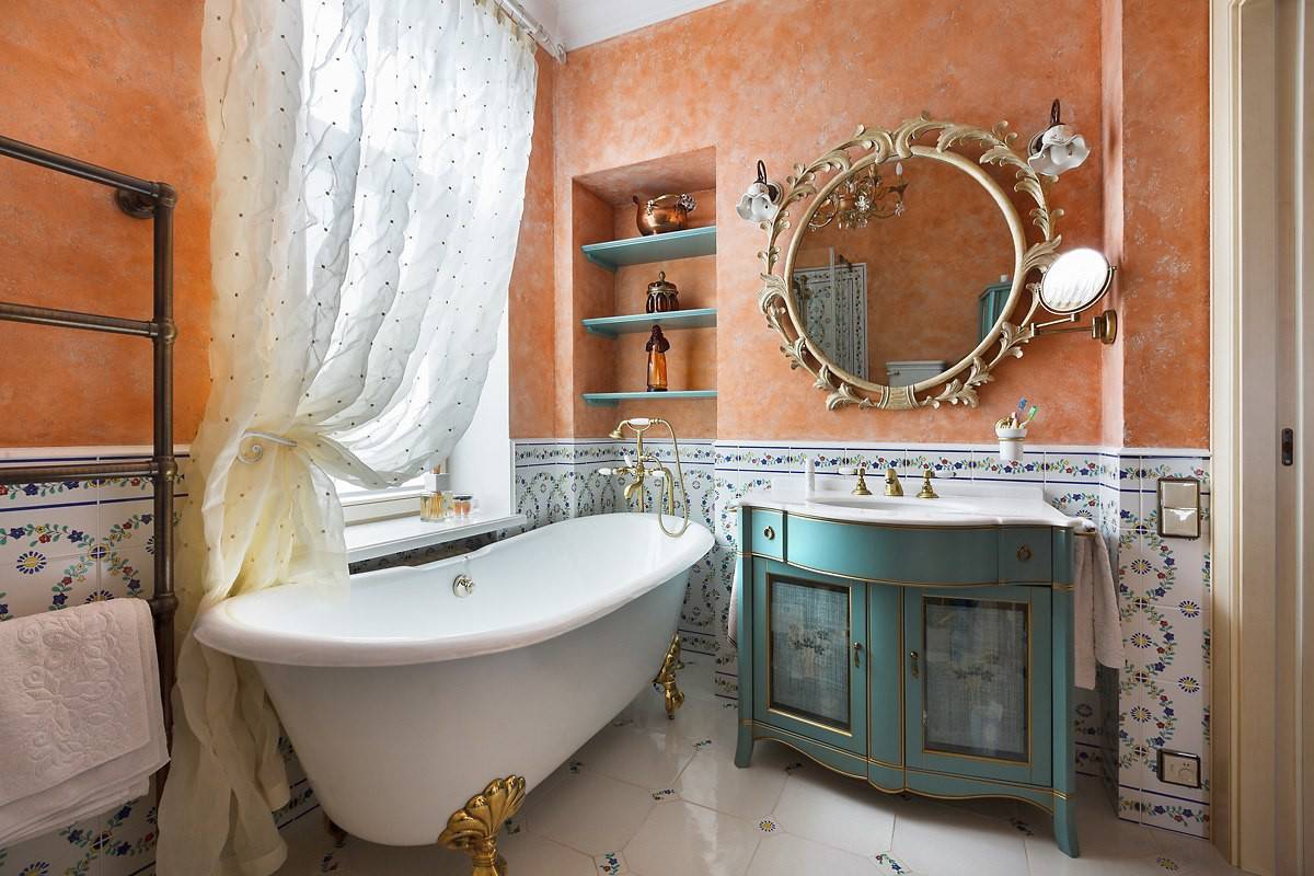 - Для ванны данного стиля характерно использование только натуральных материалов.