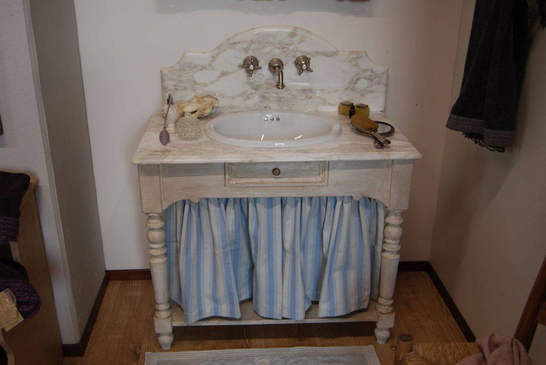 Первой скрипкой ансамбля ванной комнаты несомненно выступает тумба под раковину. Вот уж чудо из чудес, она достойна нашего восхищения. Витая и резная, потёртая и состаренная, но всегда винтажная. Провансовая тумба под раковину притягивает взгляды своей исторической красотой.