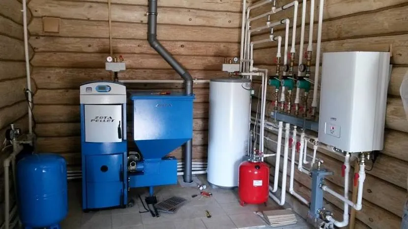 Комбинированные котлы отличный вариант в доме, где случаются перебои с электричеством или с подачей газа Источник brjansk.buyreklama.com В настоящее время, чаще всего в частных домах используются газовые котлы, и речь идет о котлах малой мощности. Обусловлено это сравнительно низкой ценой газа в газифицированной местности, и удобстве использования такого метода отопления (температура горения ниже, что позволяет применять в производстве более дешевые материалы). Для его установки понадобится разрешительная документация. Кроме того, котел одновременно с нагреванием воды (с бойлером) можно установить только для помещений до 200 м2.