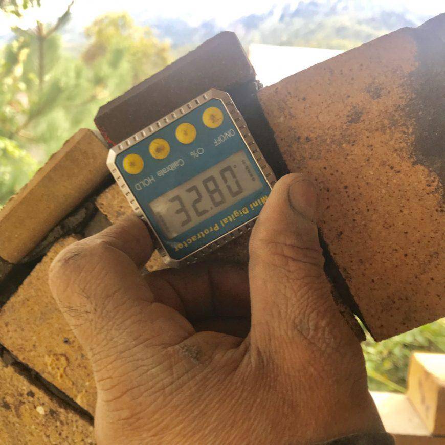 Сначала кладут нижний ряд кирпичей толщиной в 1 единицу. При этом длинная сторона кирпича должна располагаться поперек кладки. Следующий ряд нужно класть перпендикулярно первому. Раствор наносится в том числе и на боковую поверхность. При возведении стен в обязательном порядке нужно использовать уровень и отвес. Без этих инструментов, даже если есть самые подробные чертежи беседки с печкой, можно допустить серьезные ошибки.