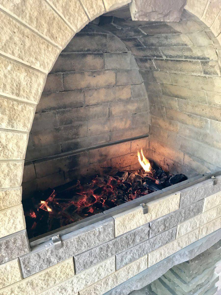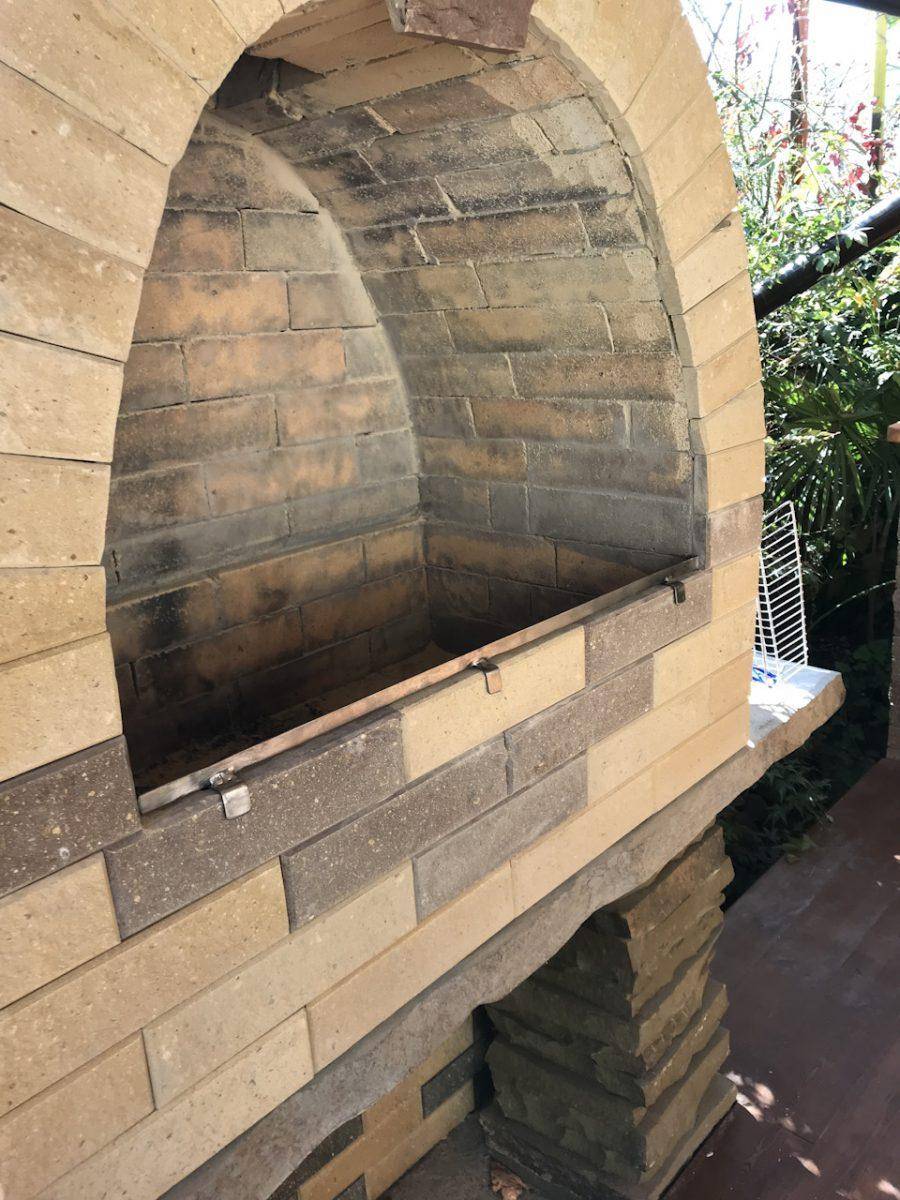 Каждый камин из кирпича включает жарочный шкаф, который выстраивается примерно 12-м по счету рядом. Чтобы было удобнее разместить шампура, рекомендуется закладывать переднюю часть конструкции одним кирпичным рядом. С 16-го ряда начинается формироваться жарочная область, на которой происходит процесс перевязки кирпичей, поэтому этот момент нуждается в контроле. Порядовка завершается образованием будущих стенок жарочной камеры. Если в печи планирую печь блюда, нужно заранее предусмотреть это и позаботиться об установке заслонки.