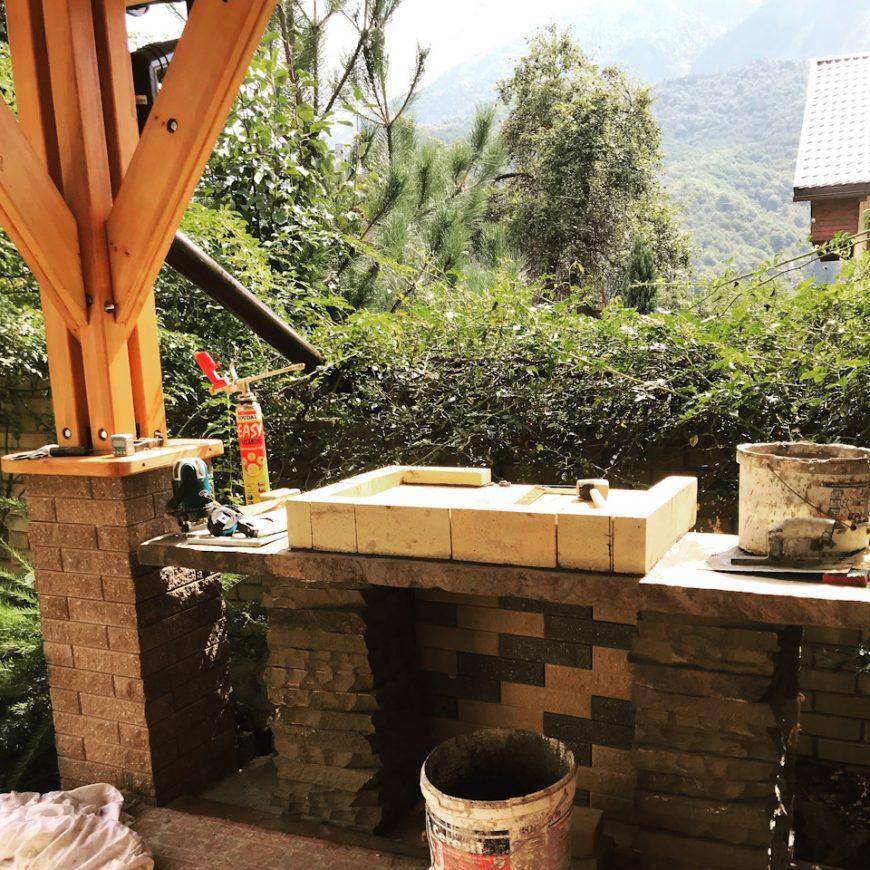 Включает в себя и духовку, и гриль, и плиту. Такое устройство позволит полностью перенести процесс готовки из душной кухни и приготовить практически любое блюдо на свежем воздухе. Для возведения требует обращения к специалистам.