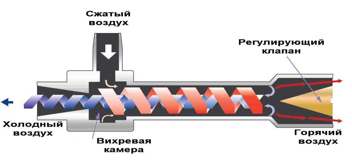 Ранк первым заметил, что температура воздуха на входе в циклон (воздухоочиститель) отличается от температуры той же воздушной струи на выходе. Впрочем, на начальных этапах стендовых испытаний, вихревую трубу проверяли не на эффективность нагрева, а наоборот, на эффективность охлаждения воздушной струи.