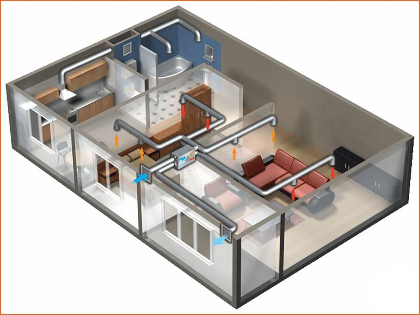 Предварительную схему с полным набором компонентов, отвечающую всем требованиям желательно согласовать со специалистом во избежание каких-либо ошибок и недочетов, которые могут привести к появлению в помещении сквозняка, шума или вибрации.