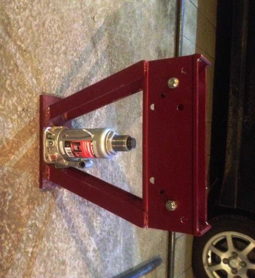 - В завершении для регулировки радиуса изгиба профильных труб нужно установить на верхней полке гидравлический домкрат.