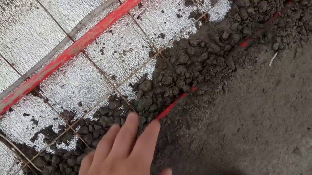 Раствор должен быть однородным. Чтобы не нанести вред греющему кабелю исключается в бетонной смеси наличие острых частиц и камней. Перед заливкой обязательно выполняется тестирование электрического оборудования на соответствие сопротивления.