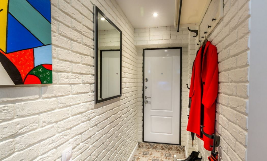 Прекрасно подойдет для интерьера небольшой прихожей стиль Лофт, при котором одна из стен выполнена кирпичной кладкой, остальные – с использованием декоративной штукатурки.
