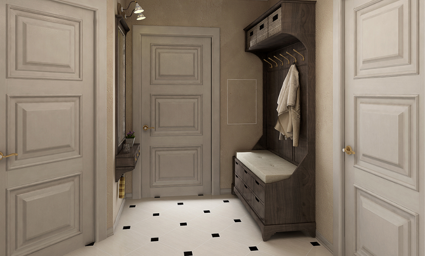 - маленький коврик (если нет тамбура, то на коврике должно быть удобно разуваться минимум 2 людям).