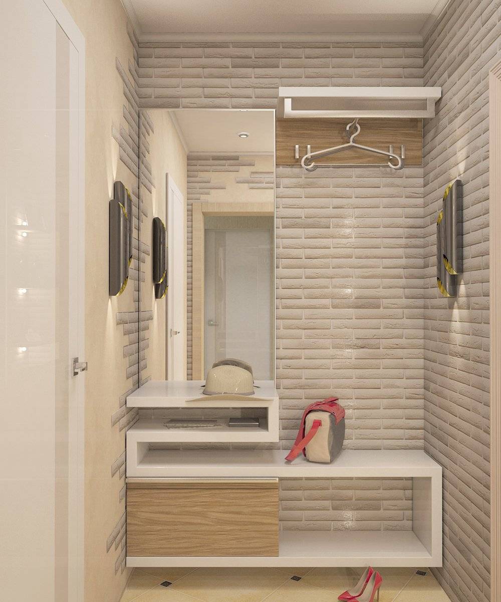 - Для маленького пространства хорошо подойдет встроенный вариант мебели, который занимает меньше места и позволяет поместить большое количество вещей. Не стоит забывать об обувной полке или галошнице, иначе обувь будет загромождать и без того небольшое пространство;