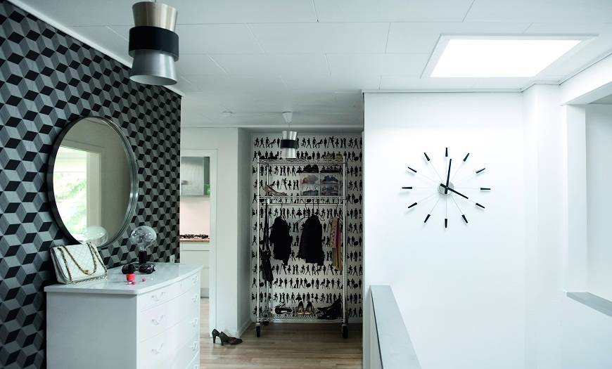 Лампы дневного света, мягко освещая пространство, увеличивают маленькую прихожую, особенно, если свет направлен на зеркало. Главное, чтобы в целом освещение получилось близким к естественному, было приятным для глаз и восприятия.