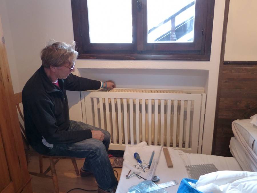 Затем устанавливаются батареи. Для этого используется строительный уровень – каждый радиатор должен висеть на стене максимально ровно, чтобы обеспечить правильную циркуляцию