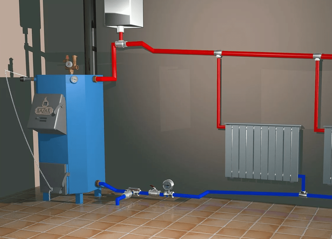 В качестве отопительного оборудования устанавливают котлы, радиаторы.