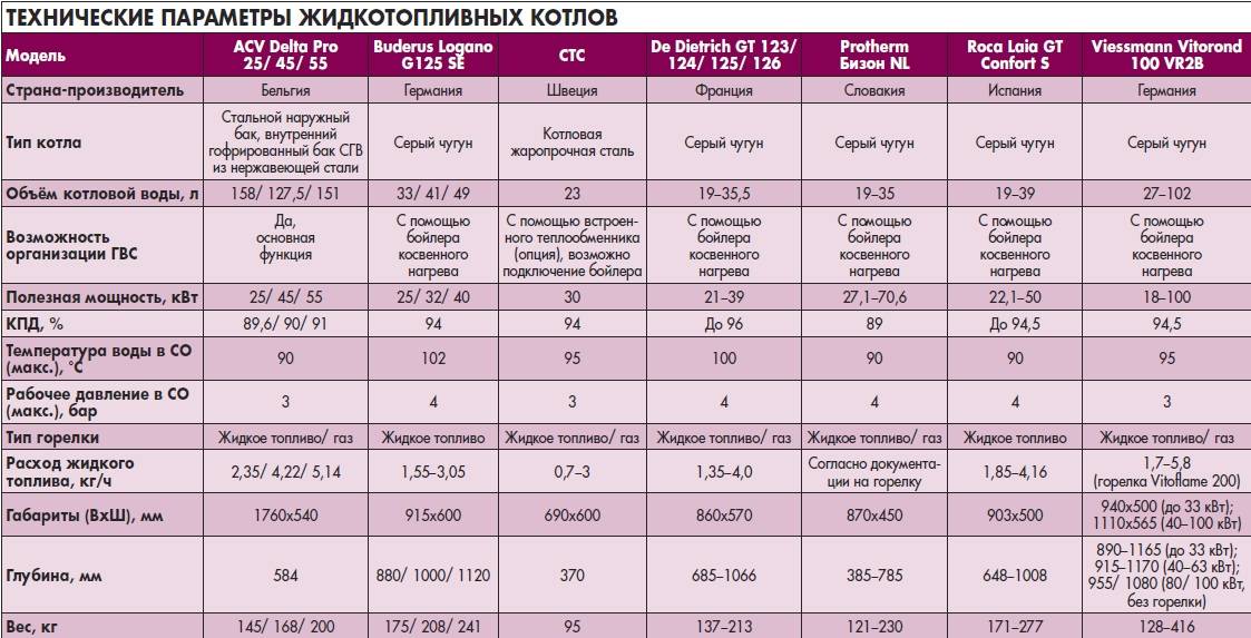 Список разновидностей жидкого горючего довольно обширный. Выбор конкретного типа зависит от модели котла. Чаще всего используется: