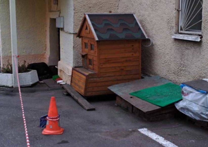 - С помощью поддона, деревянных брусьев и тому подобного сделать помост или спуск, так как теплый кошачий домик должен быть на не большом расстоянии от дороги либо земли.